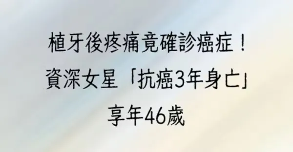 植牙後疼痛竟確診癌症!資深女星「抗癌3年身亡」享年46歲!
