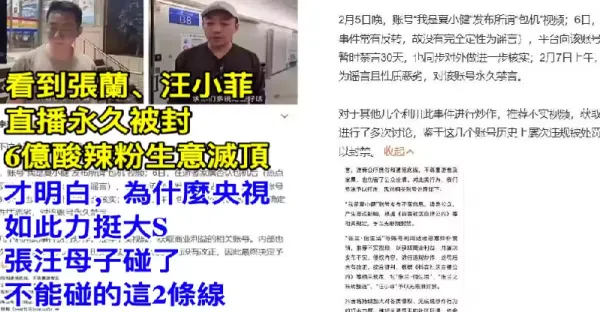 看到張蘭、汪小菲直播永久被封,6億酸辣粉生意滅頂,才明白,為什麼央視如此力挺大S,張汪母子碰了不能碰的這2條線
