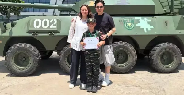 蘇永康送兒子到廣州軍訓一周,兒子出營後一臉開心,膚色黑了一圈
