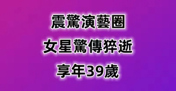震驚演藝圈 女星驚傳猝逝 享年39歲