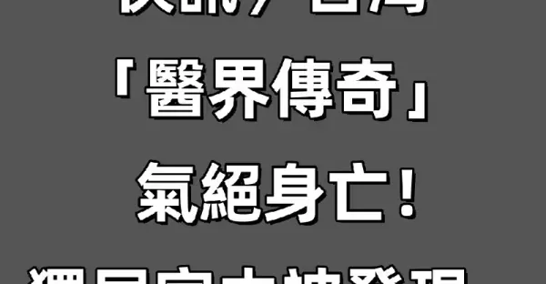 快訊/台灣「醫界傳奇」氣絕身亡!獨居家中被發現...