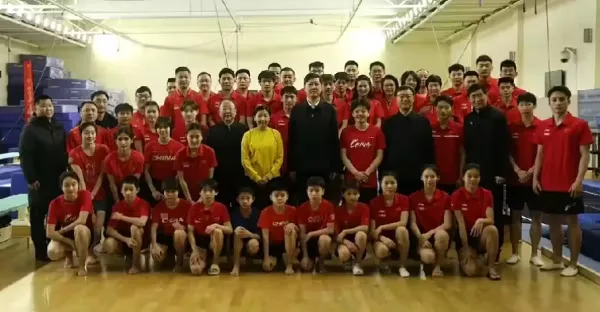 新鮮的全紅嬋和陳若琳教練,國家跳水夢之隊過年歸隊後,國家體育總局的領導在新春佳節來到看望運動員