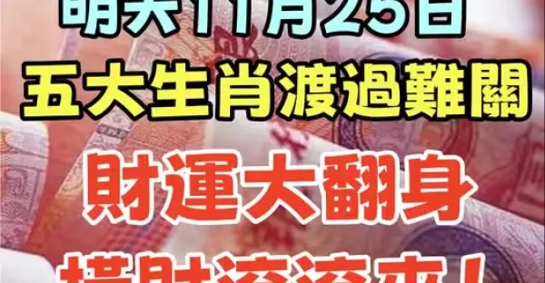 明天11月25日,五大生肖渡過難關,財運大翻身,橫財滾滾來~