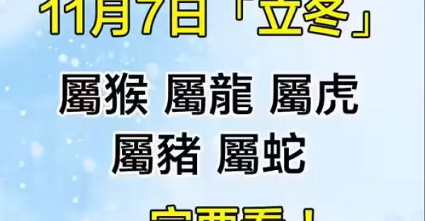 11月7日「立冬」「屬猴 屬龍 屬虎 屬豬 屬蛇」一定要看
