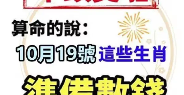 10月19日一筆橫財入命,6個生肖財運當頭,徹底翻身!