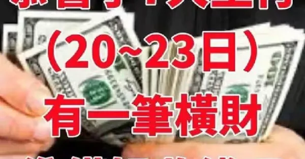 恭喜了7大生肖,在未來三天( 10月20~23日)即將有一筆橫財,準備好收錢吧!