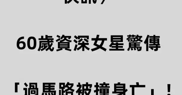 快訊/60歲資深女星驚傳 「過馬路被撞身亡」!