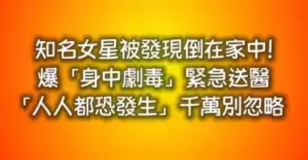知名女星被發現倒在家中!爆「身中劇毒」緊急送醫 「人人都恐發生」千萬別忽略!