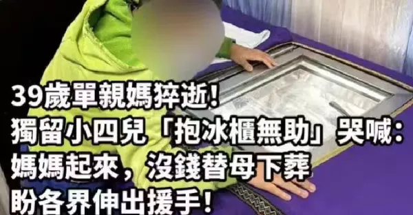 39歲單親媽猝逝!獨留小四兒「抱冰櫃無助」哭喊:媽媽起來,「沒錢替母下葬」盼各界伸出援手!!