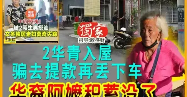 2華青入屋 騙去提款再丟下車 華裔阿嬤積蓄沒了 撿回命