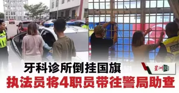 牙科診所倒掛國旗 執法員將4職員帶往警局助查
