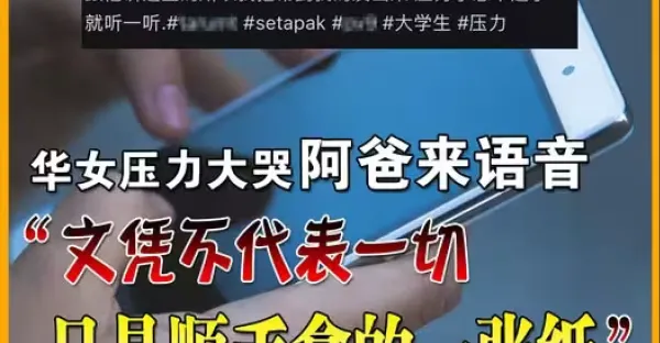 華女壓力大哭 阿爸來語音 「文憑不代表一切 只是順手拿的一張紙」