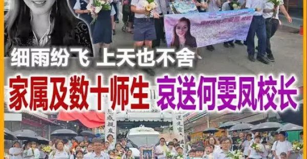 細雨紛飛 上天也不舍 家屬及數十師生 哀送何雯鳳校長