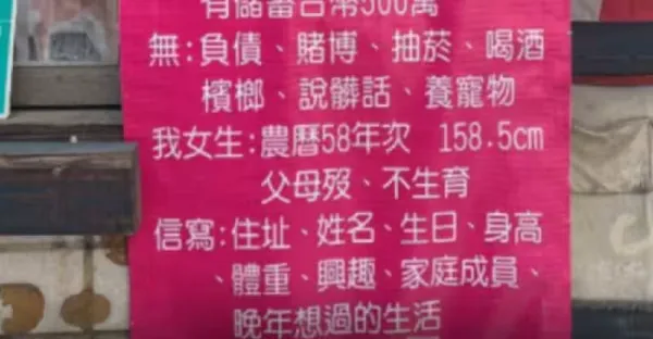54歲女徵婚「存款有500萬再來」!列條件「4有7無」網揪出亮點傻了
