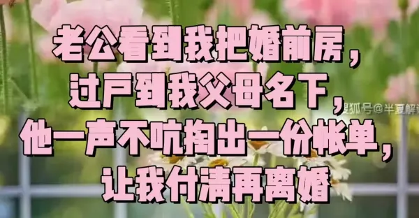 老公看到我把婚前房,過戶到我父母名下,他一聲不吭掏出一份帳單, 讓我付清再離婚