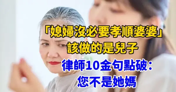 「媳婦沒必要孝順婆婆」該做的是兒子,律師10金句點破:您不是她媽