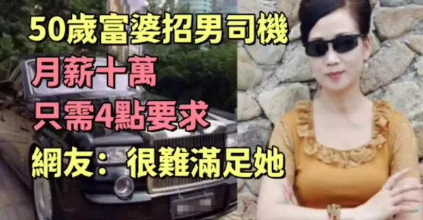 網友:很難滿足她,50歲富婆招男司機,月薪十萬隻需4點要求,
