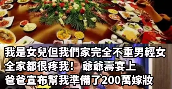 我是女兒, 但我們家「完全不重男輕女」全家都很疼我! 爺爺壽宴上「爸爸宣布幫我準備了200萬嫁妝」,大嫂一聽卻威脅:「錢不給我,我就拿掉肚子裡小孩!」 本來以為我媽會怕「結果下秒我媽說的話」讓她腿軟了