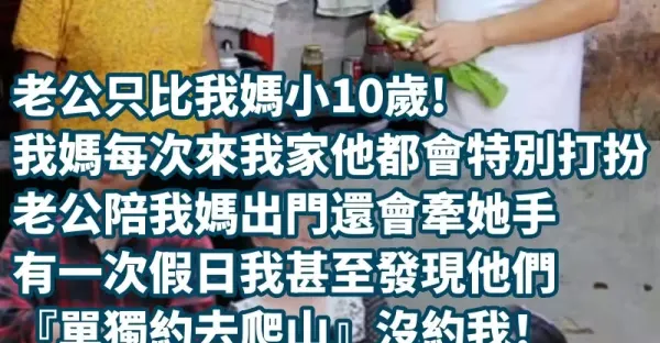 「老公只比我媽小10歲。我媽每次來我家他都會特別打扮,老公陪我媽出門還會牽她手,有一次假日我甚至發現他們『單獨約去爬山』沒約我!老公卻說『他都是為了我和岳母打好關係』罵我想法太齷齪... 但這真的正常嗎?」