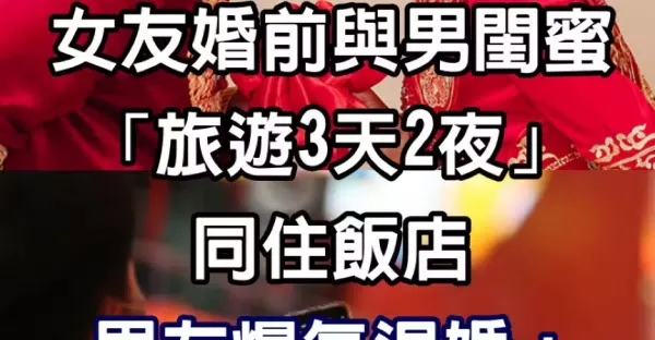 「沒結婚是自由身」! 女友婚前與男閨蜜「旅遊3天2夜」同住飯店 男友爆氣退婚:成全你的自由