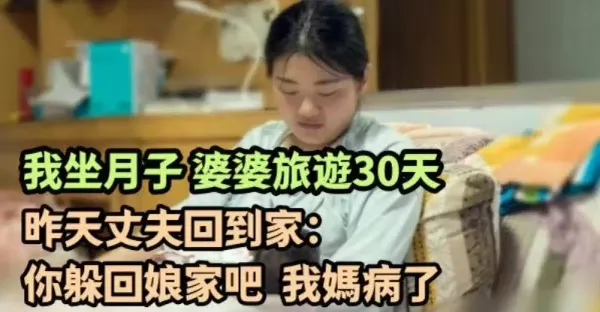 我坐月子婆婆旅遊30天,昨天丈夫回到家:你躲回娘家吧,我媽病了!