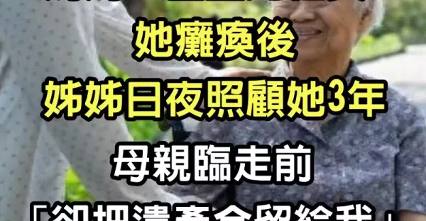 媽媽從小就重男輕女! 但她癱瘓後「卻是姐姐日夜照顧她3年」,母親臨走前「把遺產全留給我」於是我和弟弟決定對姐姐撒謊…