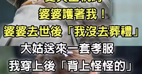 丈夫外遇「婆婆護著我」不肯接受小三! 但我還是決定離婚「婆婆過世後我沒去參加葬禮」…大姑送來一套孝服「我穿上發現背上怪怪的」 伸手一摸淚崩