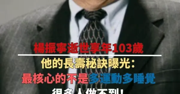 楊振寧逝世,享年103歲,他的長壽秘訣曝光:最核心的不是多運動,多睡覺,很多人都做不到!