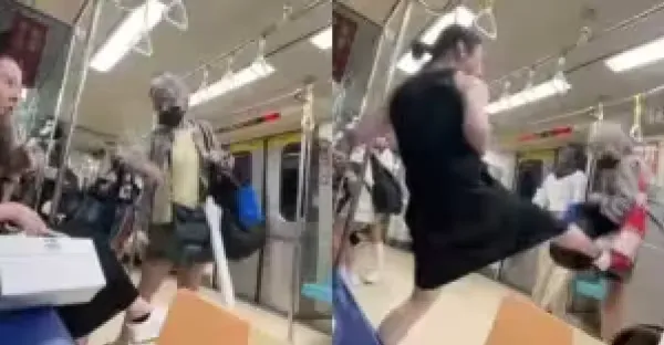 白髮婦北捷甩袋攻擊被踹飛,捷警要辦了!最高開罰「這個數!」