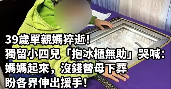 39歲單親媽猝逝!獨留小四兒「抱冰櫃無助」哭喊:媽媽起來,「沒錢替母下葬」盼各界伸出援手!